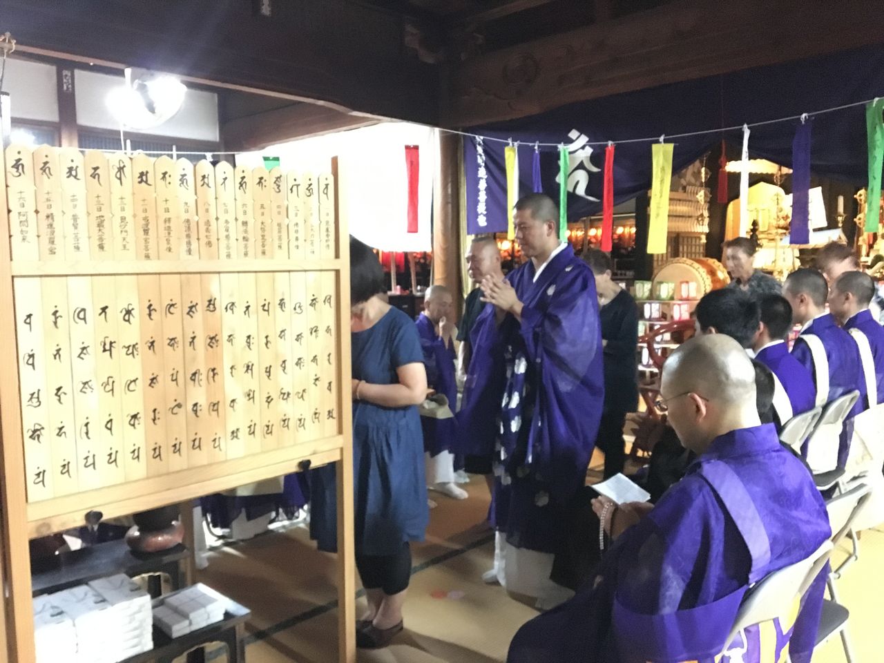 8月20日本年も先祖供養・水子供養のお盆の行事「施餓鬼供養」法要を執り行いました。お申込みを頂きました皆様の願うところの霊位と当山の永代供養の霊位の菩提を一座お勤めいたしました。 本年は9ヶ寺の僧侶によりお勤めを致しました。 お参り頂きました皆様にはご焼香をして頂きました。 お申込み頂いたの灯篭。法要後、近くの川で精霊流しを致しました。